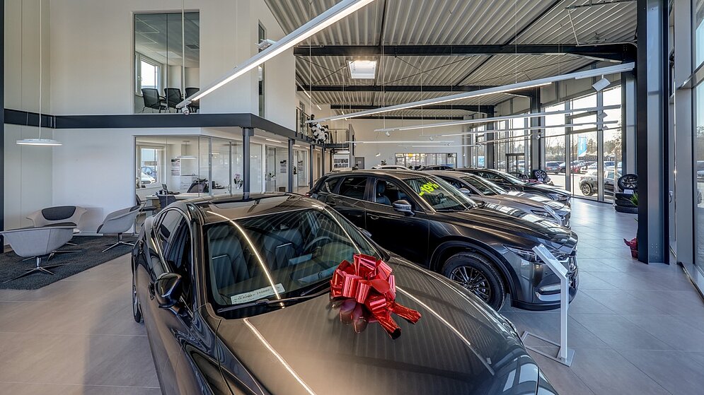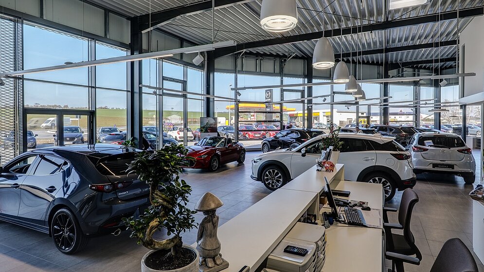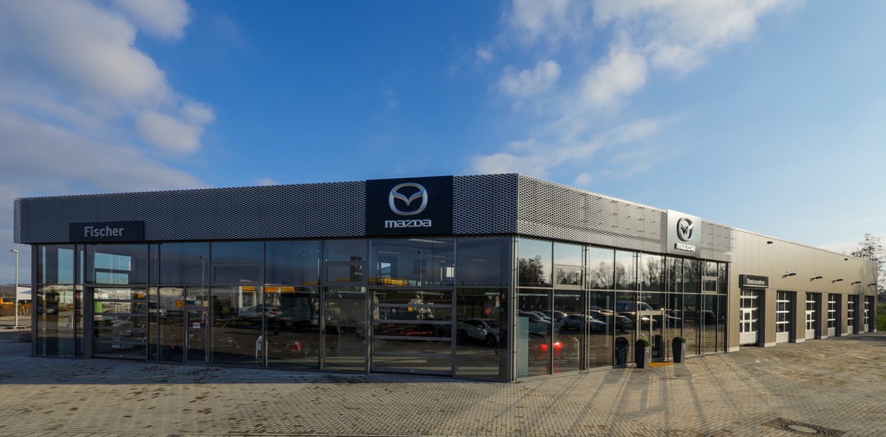 Für Auto Fischer haben wir in Karben ein 1.200 qm großes Mazda Autohaus gebaut. Herzstück des zweigeschossigen Neubaus ist die 452m² große Ausstellungsfläche, neben einem Werkstattbereich, Lagerflächen, einer Dialogannahme sowie Büro- und Sozialräumen. Nach einer rund neunmonatigen Bauzeit wurden im feierlichen Rahmen die Schlüssel an die Bauherren Familie Fischer und Reis überreicht.