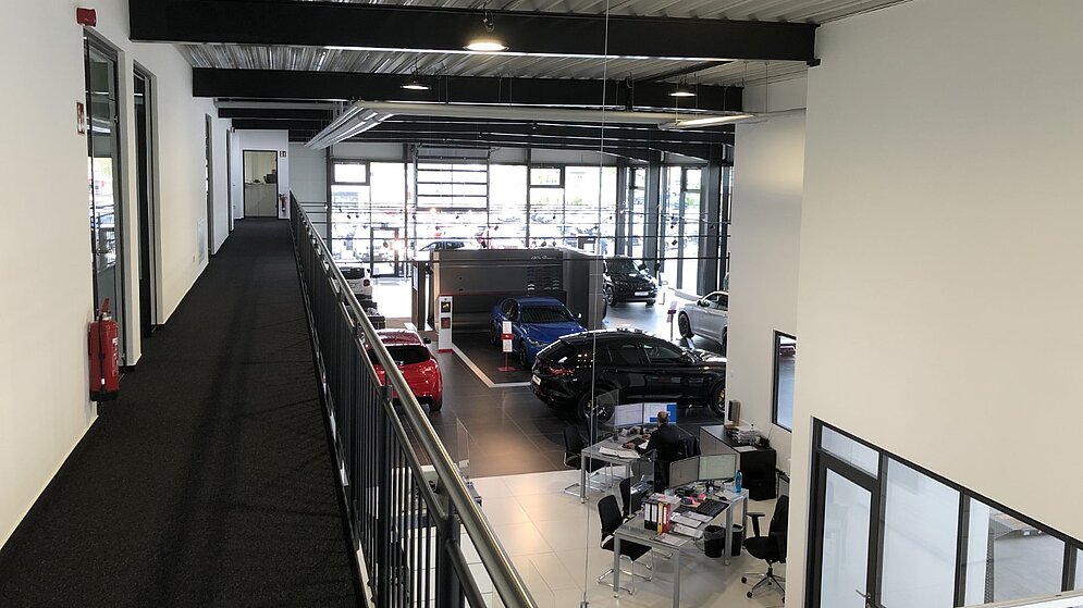 Das architektonisch ansprechende Gebäude mit einer Fläche von über 1.300 qm realisiert eine Markentrennung durch Anordnung von zwei Übergabeplätzen sowie von zwei Direktannahmen mit dazugehörigem Servicebereich. Auf einer Galerieebene sind weitere Büroarbeitsplätze vorhanden.