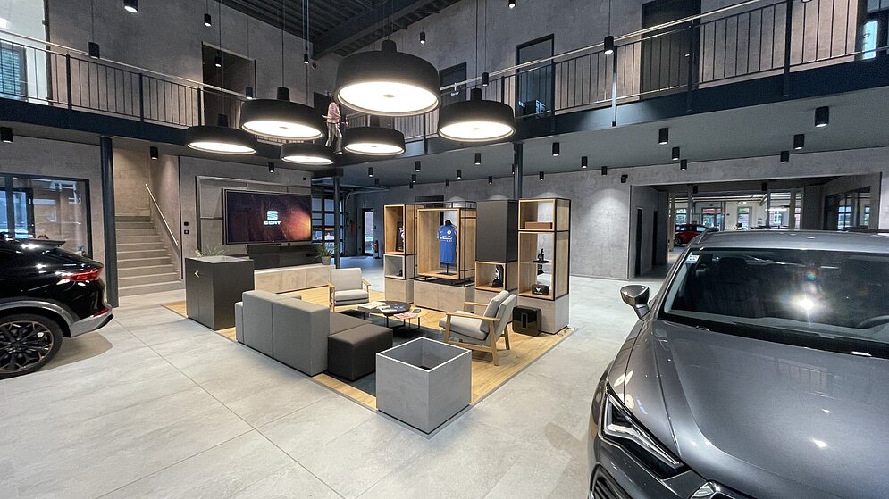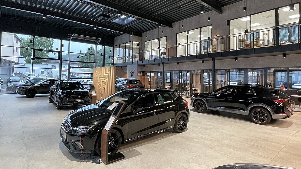 Das neue Autohaus wurde im Einklang mit dem aktuellen SEAT / CUPRA Corporate Identity Konzept realisiert, das eine ansprechende und ausgewogene Präsentation beider Marken sicherstellt. Besonders hervorzuheben ist der zentral gelegene Kundenbereich, der ein immersives Markenerlebnis schafft und den Besuchern ein Maximum an Komfort bietet. Eine besondere Herausforderung bestand darin, dass sich die SEAT / CUPRA CI während der laufenden Projektentwicklungs- und Planungsphase mehrmals geändert hat und laufend Anpassungen entsprechend der Vorgaben des Markenherstellers erforderlich waren.