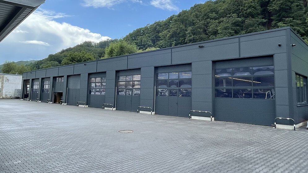 Der Neubau erstreckt sich über zwei Etagen und umfasst eine Gesamtfläche von etwa 1.280 m². In diesem Raumkonzept finden verschiedene Bereiche Platz, darunter eine großzügige Ausstellungsfläche, eine hochmoderne Werkstatt mit acht Arbeitsplätzen sowie eine spezielle E-Werkstatt, die sich auf die Reparatur von Akkus spezialisiert hat. Dazu kommen Flächen für die Neuwagenübergabe, eine Galerie, Büro- und Sozialräume sowie eine Dachterrasse. Im Bereich der Außenanlagen haben wir eine Stellplatzüberdachung integriert, die nicht nur Schutz vor Witterungseinflüssen bietet, sondern auch mit zusätzlichen Ladesäulen für Elektroautos ausgestattet ist.