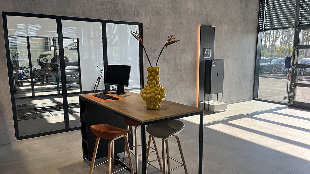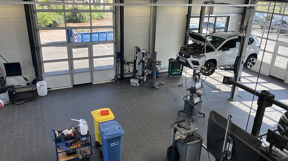 Neben einer ca. 350m² großen Ausstellung umfasst der Neubau die Bereiche Neuwagenübergabe, Werkstatt, Dialogannahme, Büro- und Besprechungsräume, Sozialräume sowie Technik- und Lagerräume.