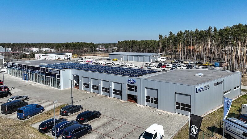 Für unseren Kunden Autohaus Frahnow durften wir bereits zum dritten Mal bauen. In Cottbus realisierten wir einen Anbau – der bestehende Service- und Werkstattbereich wurde um eine rund 425m² große Ausstellung mit Bürotrakt sowie eine 295m² große Lagerhalle erweitert. Zusätzlich erfolgte eine Fassadensanierung am bestehenden Ausstellungsgebäude. So entstand ein moderner FordStore nach aktueller CI. Die Erweiterung erfolgte bei laufendem Geschäftsbetrieb.