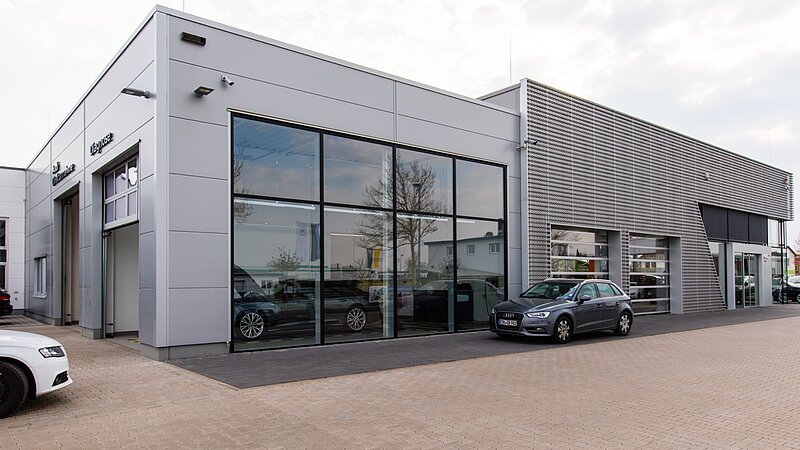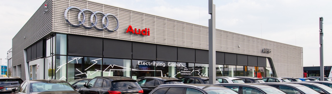 Für die Autohaus Gotha GmbH (AHG GmbH) durften wir einen Audi-Terminal planen und schlüsselfertig bauen. Die Audi-CI, also das Terminal-Konzept, wurde entsprechend der aktuellen Anforderungen vollständig umgesetzt. Herzstück des eingeschossigen Neubaus ist die ca. 508m² große und beeindruckende Ausstellungsfläche für Neufahrzeuge der Marke Audi.