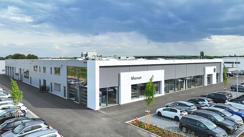 2023 durften wir erneut für die Marnet-Gruppe bauen: In Wiesbaden haben wir den Neubau eines VW-Autohauses mit einer Gesamtgröße von über 4.100m² realisiert. Neben einer 576m² großen Ausstellung sind Flächen für die Bereiche Werkstatt, Karosserie, Dialogannahme, FAS/Prüfung, Aufbereitung, Lager, Verwaltung, Verkauf, Fahrzeugwäsche, Technik, Sozialräume sowie ein ca. 360m² großer Gebrauchtwagenpavillon entstanden.