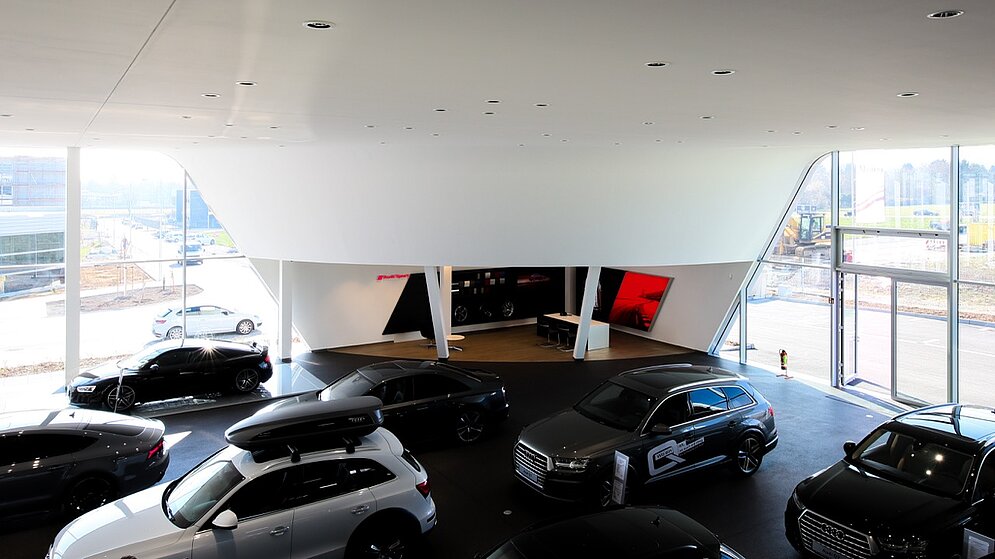 Höchste Ausführungsqualität ist für uns selbstverständlich. Auf einem Grundstück mit ca. 12.000 m² wurde das 4.500 m² große Autohaus (Showroom: 750 m²) errichtet. Auf diesem Raum können die komplette Audi-Modellpalette sowie einige ausgewählte Sportexponate präsentiert werden.