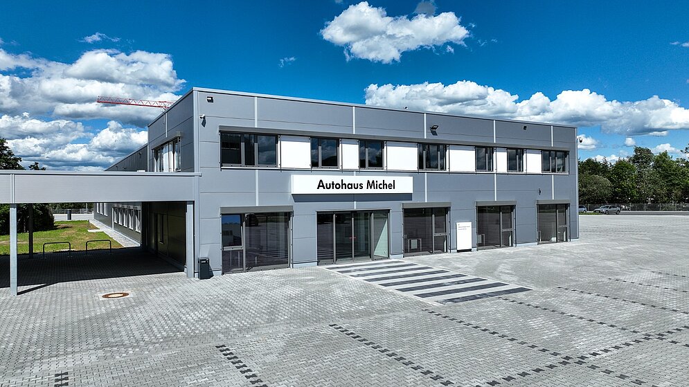 Für Autohaus Michel haben wir ein neues Gebrauchtwagen- und Logistikzentrum realisiert. Auf dem 25.000 m² großen Grundstück ist ein modernes Gebrauchtwagenautohaus mit einer Nutzfläche von 2.062 m² sowie ein Logistikzentrum mit 657m² entstanden. Der Neubau bietet also genügend Platz und optimale Voraussetzungen für die Prozesse in der Fahrzeuglogistik und -aufbereitung. Die Arbeitsplätze sind mit modernster Technik ausgestattet.