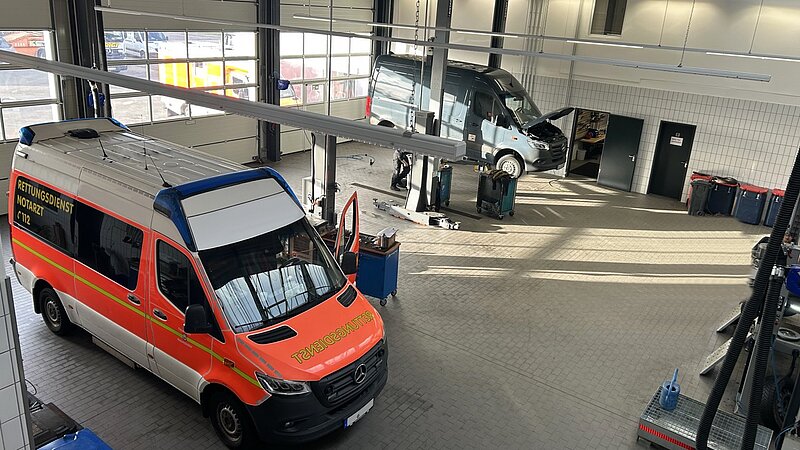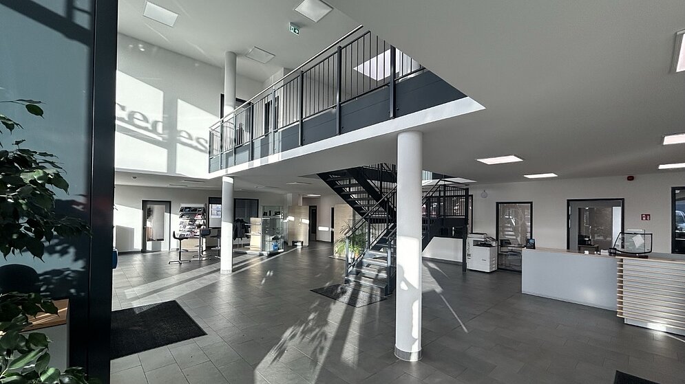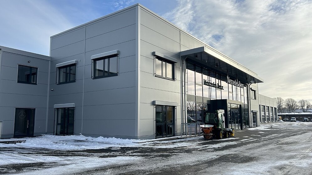Für Koepsell Nutzfahrzeuge GmbH durften wir eine neue LKW-Werkstatt mit Kundenzentrum realisieren. Am neuen Service-Standort werden Karosserie- und Reparaturarbeiten für Nutzfahrzeuge und LKW der Marke Mercedes Benz angeboten. Es ist ein funktionales Gebäude mit einer Nutzfläche über 3.000m² entstanden - mit insgesamt drei LKW Arbeitsgruben sowie Arbeitsplätzen für Karosserie und Reparatur, Fahrzeugwäsche, Technikräume, Lagerflächen sowie Büro- und Sozialräume. Das modern ausgestattete Gebäude vereint optimale Prozessabläufe mit wirtschaftlicher Bauweise.
