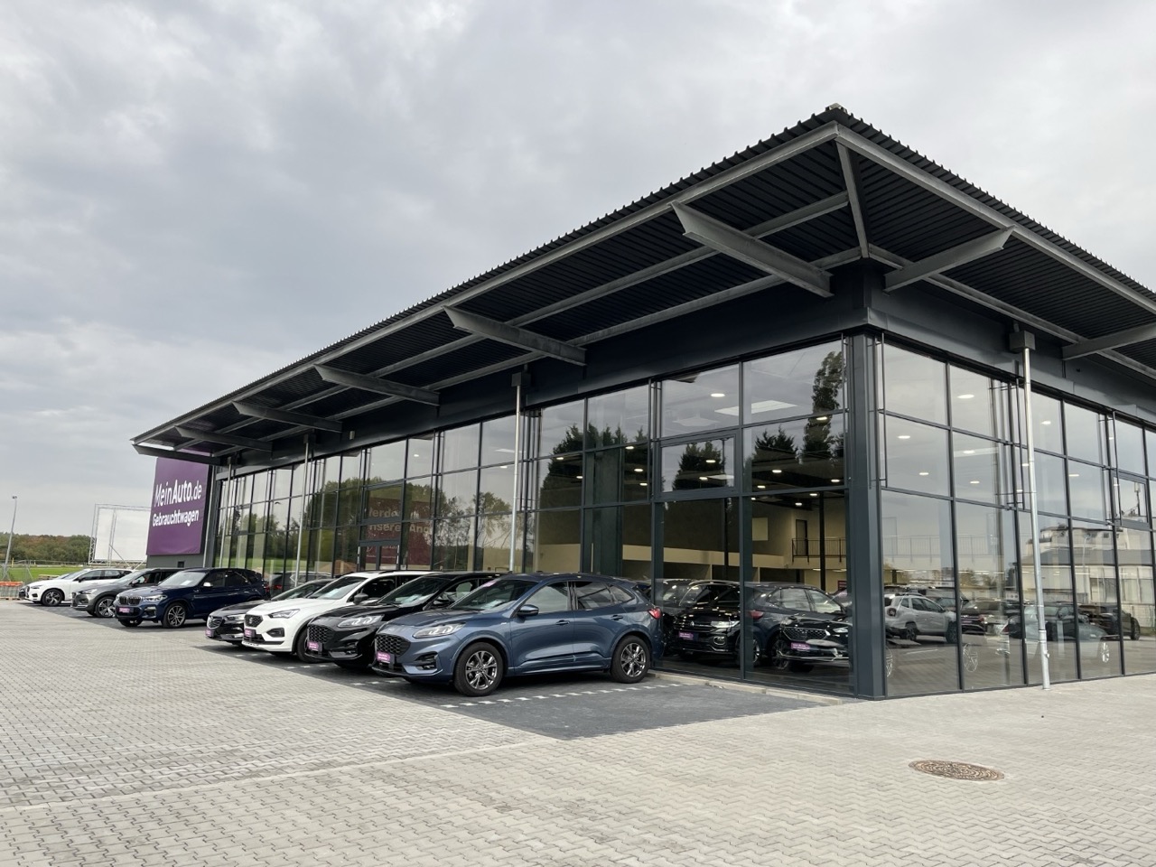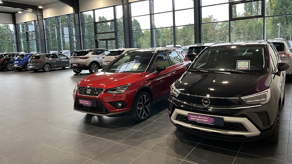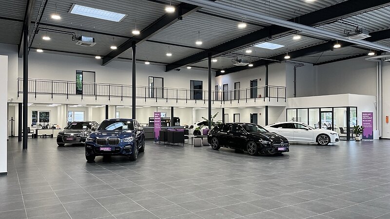 Neben einer großzügigen Ausstellung mit einer Größe von 1.125 m² umfasst das Gebäude auch eine Direktannahme, eine Waschhalle, Büros, Bereiche für Aufbereitung und Logistik und ein Räderlager. Im Außenbereich gibt es eine Stellplatzüberwachung mit einer Größe von 700m².