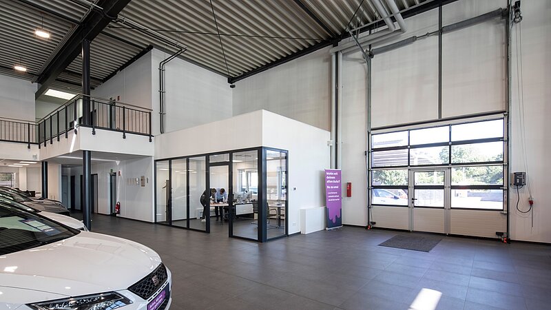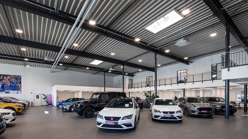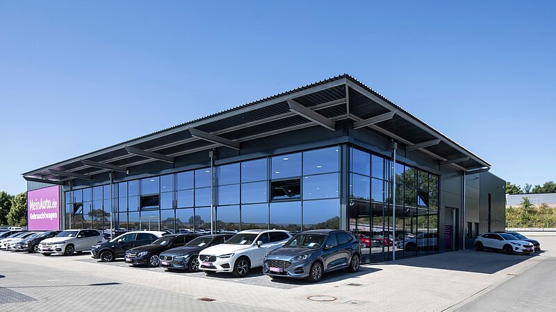 In Neuss haben wir ein Gebrauchtwagenautohaus mit einer Gesamtgröße von ca. 1.760m² realisiert. Der Neubau entstand anhand des Entwurfs des Architekten Dipl. Ing. Torger Hinrichsen und umfasst neben einer ca. 1.125m² großen Ausstellung auch Sozial- und Technikräume, eine Direktannahme, Lagerflächen, eine Waschhalle, einen Bereich für Aufbereitung und Logistik, ein Reifenlager sowie Büroräume. Darüber hinaus wurde eine Pkw-Stellplatzüberdachung mit einer Größe von ca. 576m² erstellt.