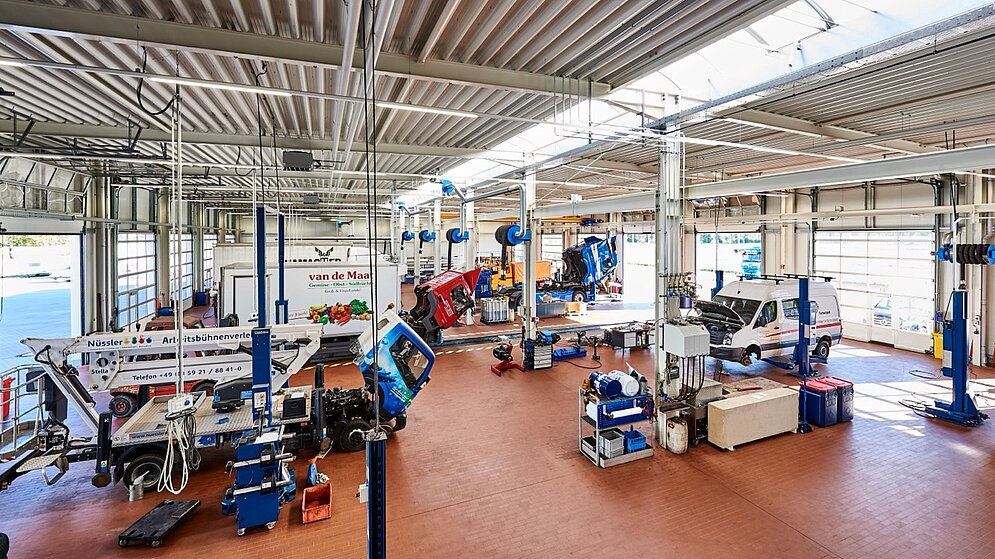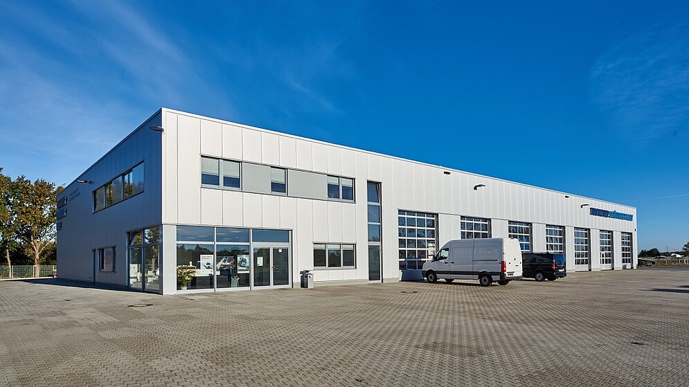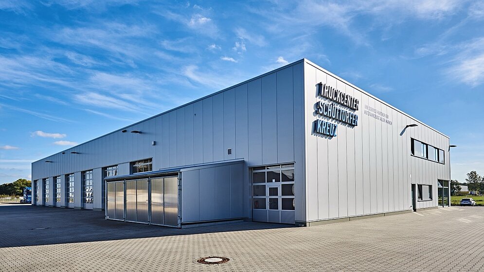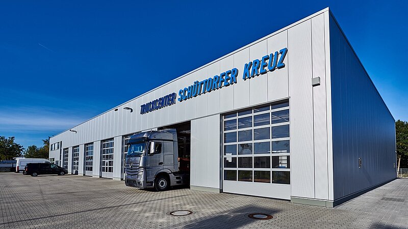 Direkt am Knotenpunkt der Autobahnen A30/A31 haben wir das Truckcenter Schüttorfer Kreuz geplant und gebaut. Auf dem 15.500 qm großen Grundstück ist eine zukunftsorientierte Mechanik- und Karosseriewerkstatt mit sieben Durchfahrten und drei 24 Meter langen Gruben für Nutzfahrzeuge aller Art und jeder Marke entstanden. Gleichzeitig ist der Betrieb Vertragswerkstatt für Nutzfahrzeuge von Mercedes-Benz, Volvo und Renault sowie Auflieger-Partner von Schmitz Cargobull. Mit weiteren Funktionsflächen des Betriebes, u.a. Reparaturannahme + Shop, Büroräume, Sozialräume, Teilelager, Öllager und einer separaten LKW-Waschstraße beträgt die Nutzfläche ca. 2.200 qm.