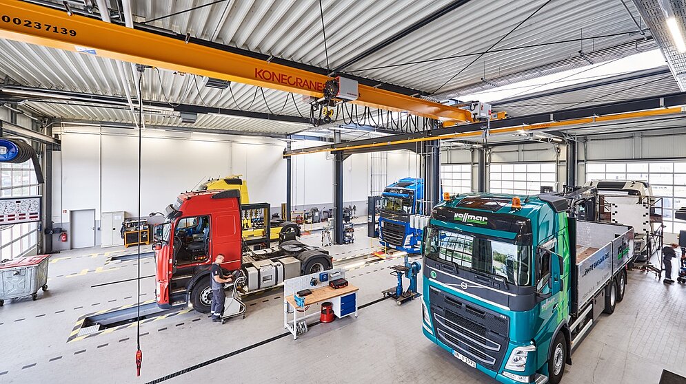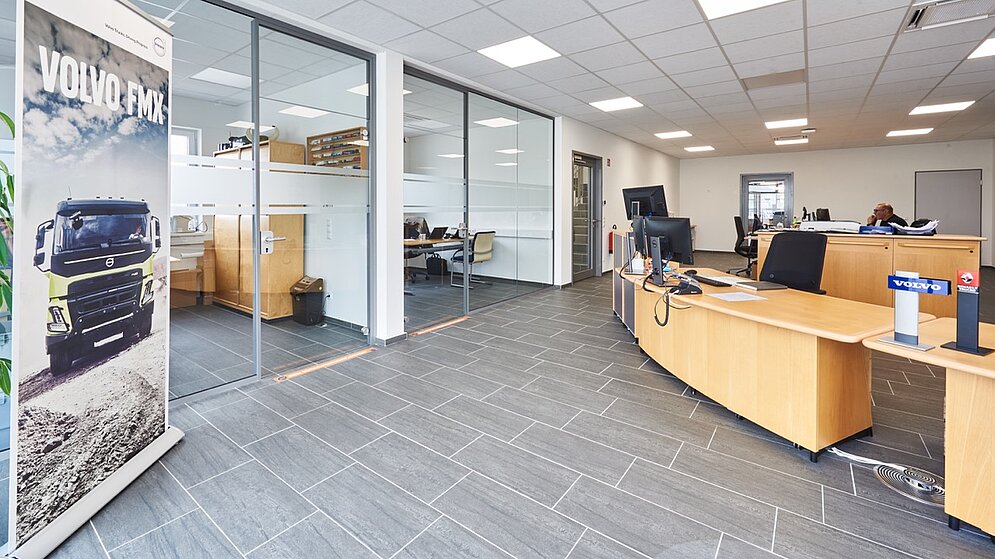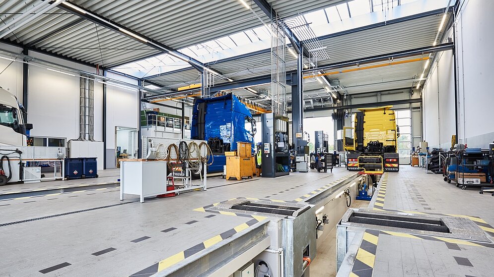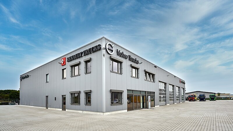 In Top-Lage mit verkehrsgünstiger Anbindung an die A1 und A61 haben wir für die Volvo & Renault Group Trucks Service GmbH in Euskirchen den Neubau einer LKW-Werkstatt auf einem 10.500 qm großen Grundstück realisert – alle Leistungen „planen, bauen, vermieten“ haben wir aus einer Hand erbracht. Das modern ausgestattete Volvo & Renault Truckcenter bietet mit einer vierspurigen Werkstatt inkl. zwei LKW-Gruben, einer Waschstraße, einem Lager, Sozialräumen sowie einem Verwaltungstrakt auf ca. 1.675 qm ideale Servicebedingungen.