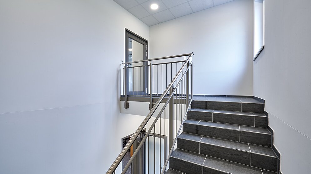 Auch in puncto Energieeffizienz und Klimaschutz ist dieses Truckcenter ein echter „Vorzeigebetrieb“. Den Energieverbrauch haben wir durch Dämmung und moderne Haustechnik so weit reduziert, dass die Kriterien für ein „KfW-Energieeffizienzhaus“ erfüllt werden. Der verbleibende Energieverbrauch wird in Summe durch eine PV-Anlage mit 99 kWp ausgeglichen. Damit ist der komplette Energieverbrauch des Gebäudes regenerativ erzeugt – der Gebäudebetrieb ist somit klimaneutral bzw. CO2-neutral. Zudem pflanzen wir nicht nur 23 Bäume und 200 Sträucher, sondern legen auch eine ca. 3.000m² große Wildwiese für Insekten an.